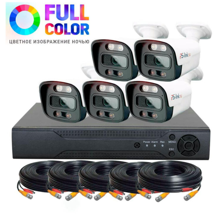 Комплект видеонаблюдения AHD 2Мп Ps-Link KIT-C205HDC / 5 камер / FullColor